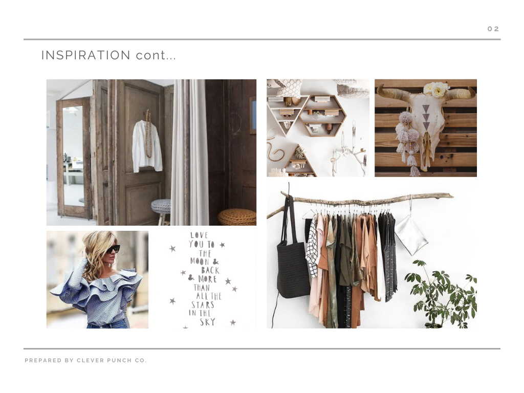 Creating a mood board based on what we knew about the client's desired look and feel.